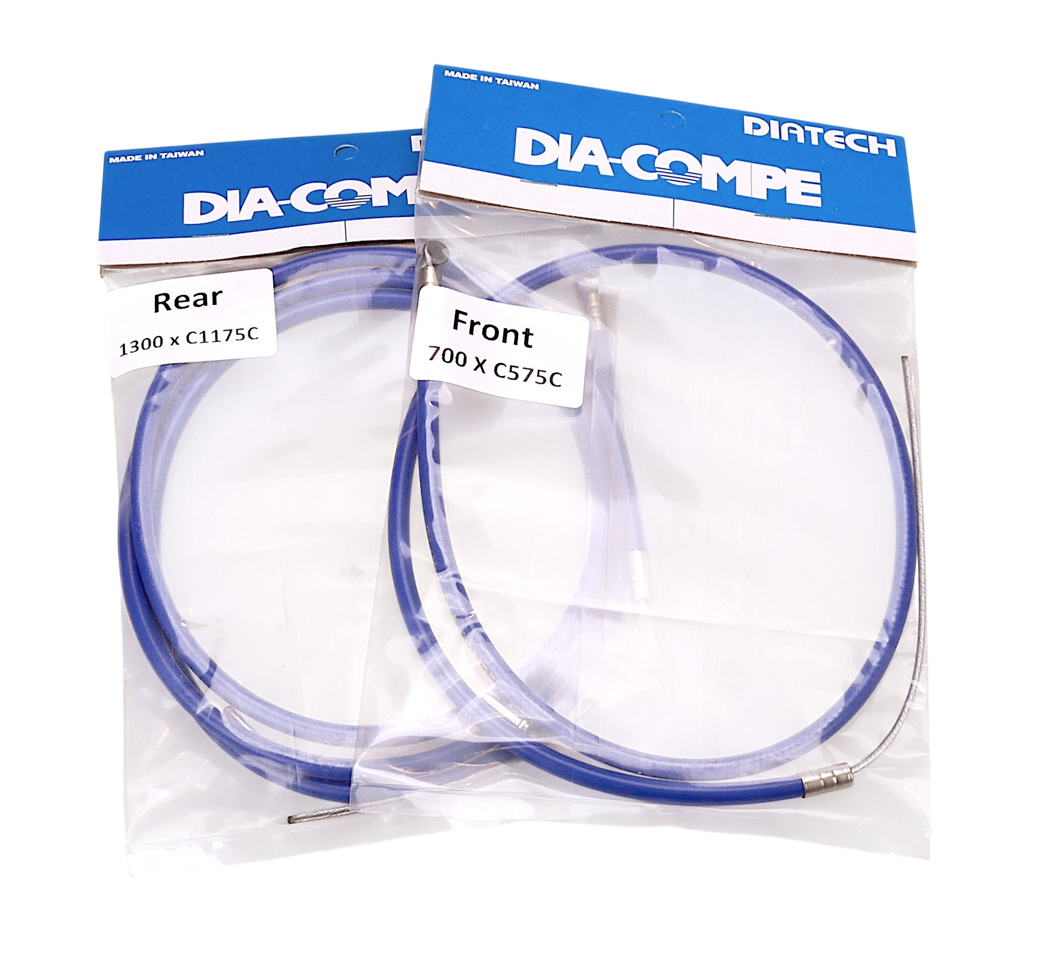 Dia-Compe BMX front and rear brake cable set. You receive one front and one rear inner cable/outer housing with end tips.The housing is teflon lined inside for smooth operation.Color (of outer housing): BLUE (with gold foil embossed branding "BMX Dia-Compe" - see 2nd photo)You will receive: