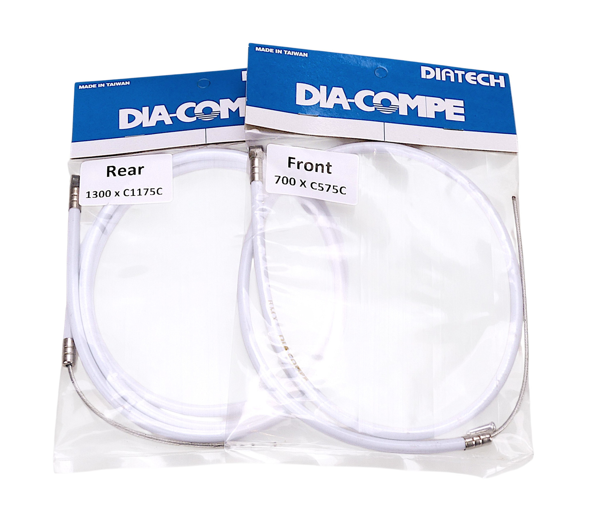 Dia-Compe BMX front and rear brake cable set. You receive one front and one rear inner cable/outer housing with end tips.The housing is teflon lined inside for smooth operation.Color (of outer housing): WHITE (with gold foil embossed branding "BMX Dia-Compe" - see 2nd photo) THIS SHADE OF WHITE IS SLIGHTLY DIFFERENT THAN OUR GYRO CABLES AND BULK CABLE HOUSING.You will receive: