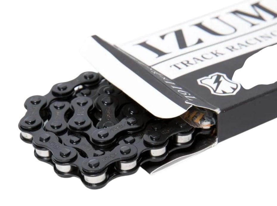 Izumi x MASH BMX single speed bicycle chain 1/2" X 1/8" 116L JET BLACK w/ SILVER rollers