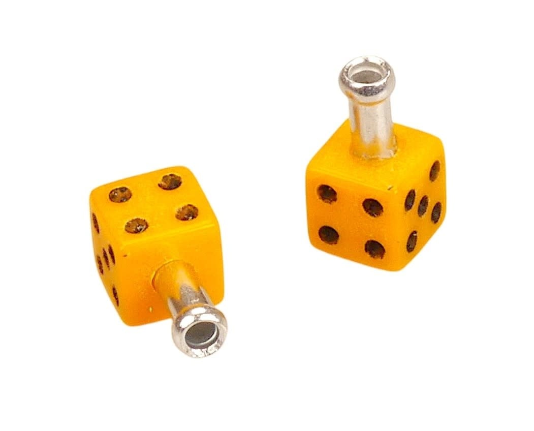 Color: Tangerine orange dice with black pips